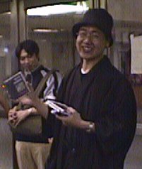 写真はそれに気をよくしたのか、にこやかな笑顔で改札口を出たところの真鍋社長。後ろには赤阪さんが。