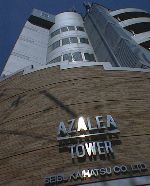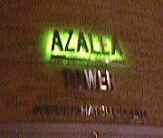 左の写真は、ページ一番上のアゼリアタワーの写真のロゴの部分です。夜はライトアップされるんですね。アゼリアタワーのロゴでなく、エコールのデスマスクロゴをライトアップしてくれれば……(^^;