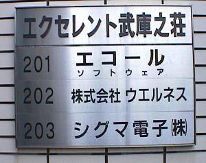 階段横に設置されている入居者看板です。二階は完全に企業向けテナントのようです。