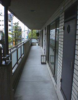 3社が入居してるとあって、かなり長い通路。もし後ろからエコールSTUFFが上がってきてエコール側に追い込まれたりしたら、飛び降りるしかありません。