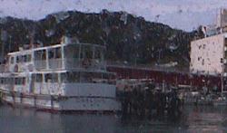 写真は乗船場を出港した直後に、乗船場を船内の窓から写したものです。水滴が付いて見にくいです。ごめんなさい。