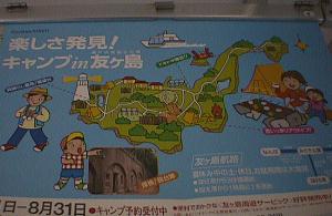 電車内では、「楽しさ発見!キャンプin友ヶ島」という南海電鉄(あるいは南海グループ)による中吊り広告も見れました。