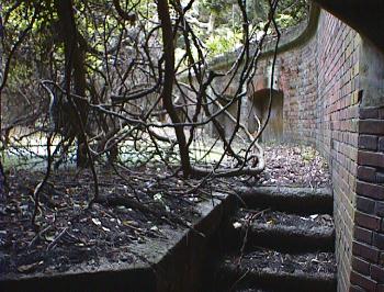真聖地編2にて「上から来るぞ、気を付けろお」の時に写る階段から建物の裏側に回れると書きましたが、左の[写真D]とその時に撮った裏側の写真(26273Byte)と、似通っているので、やはり裏側に出たようです。