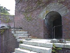 同じく第1砲台跡なのですが、階段には手すりが付けられ、窓からパイプを上に向かって通され、金属による完全なドアまで付加され、おまけにそのドアに「火気厳禁」と付けられる始末(笑)