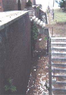 第2砲台跡を横から写してみた写真です。2つ上の写真の倒壊した部分は、この写真では先の方になるのでほとんど見えなくなってしまいました。