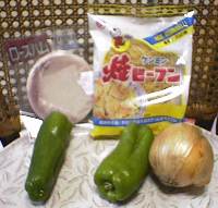 一緒に炒める物には、ピーマン,タマネギ,ハムを使用しました。最初、「もしコンバット越前様がピーマンが嫌いだったらどうしよう……」と心の中で葛藤が生じたのですが、「正義感・勇気とも平均以上のコンバット越前様ならピーマンだってきっとOKだ!」ということで、ピーマンも入れます(笑)